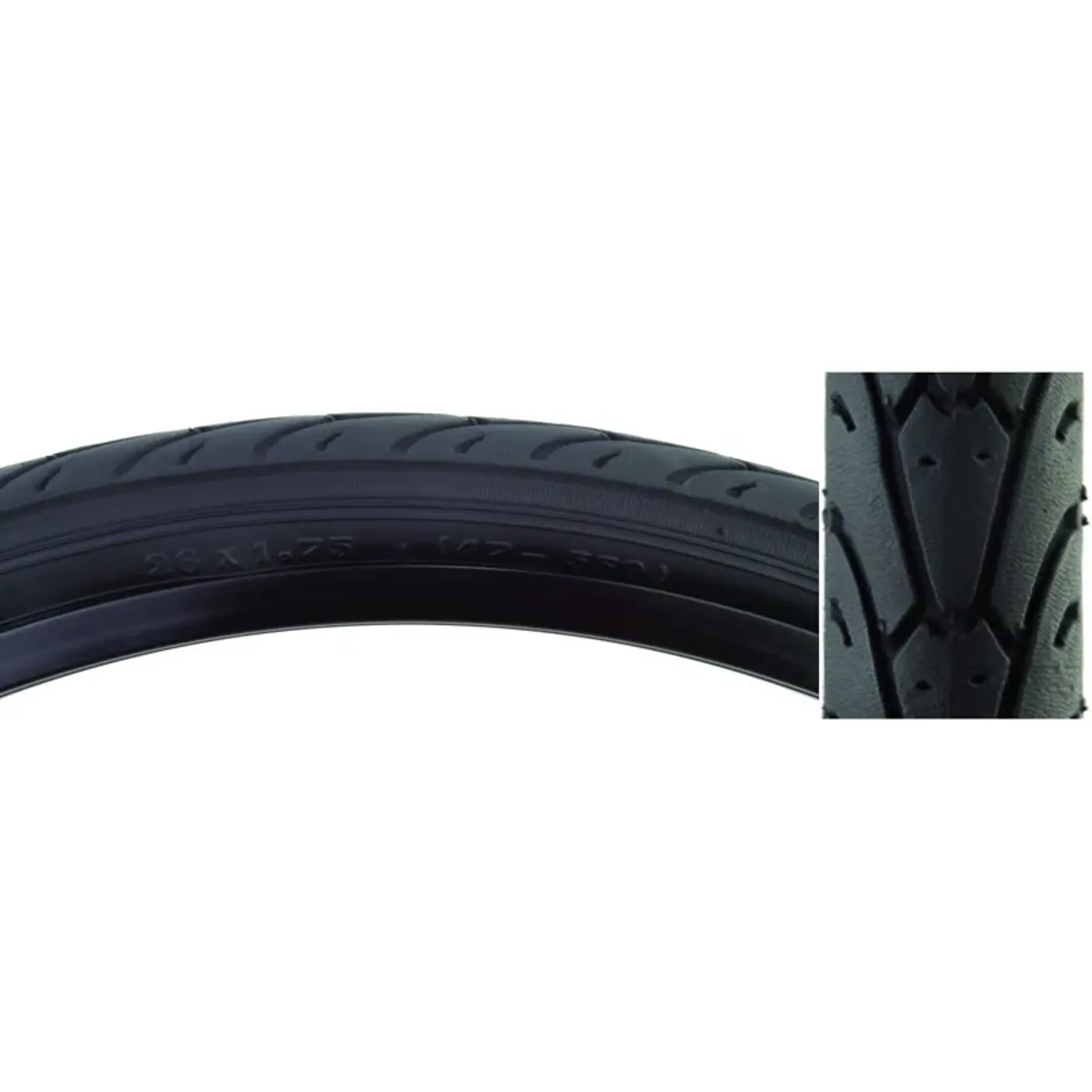 Urban/commuter tire with thick siped tread for all weather traction with low rolling resistance.
